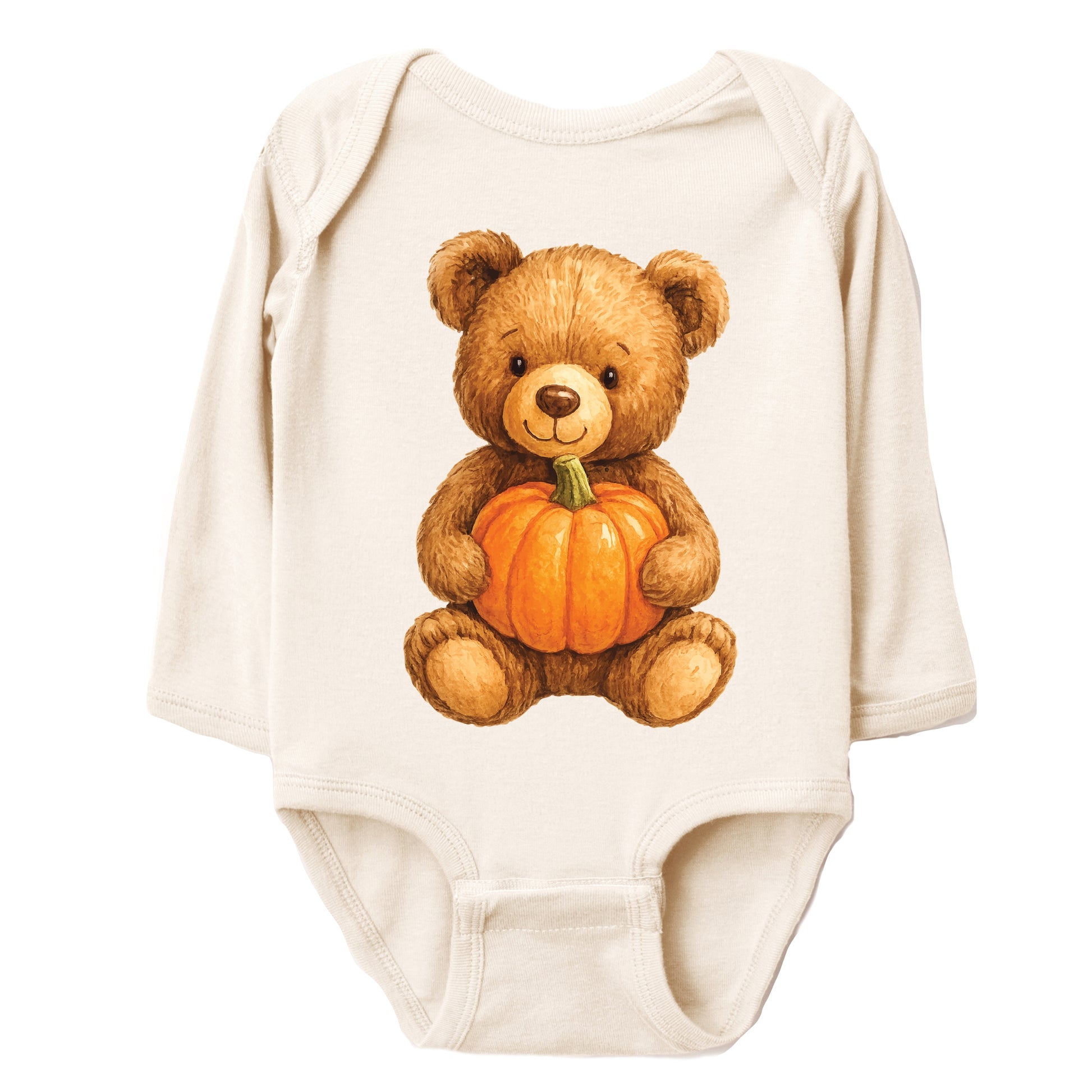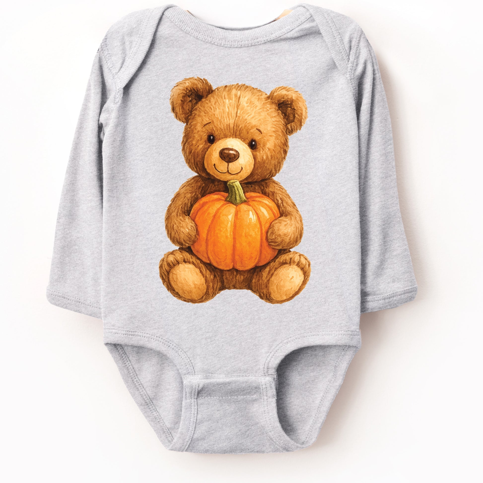 Watercolor Pumpkin Bear - Baby Long Sleeve Bodysuit