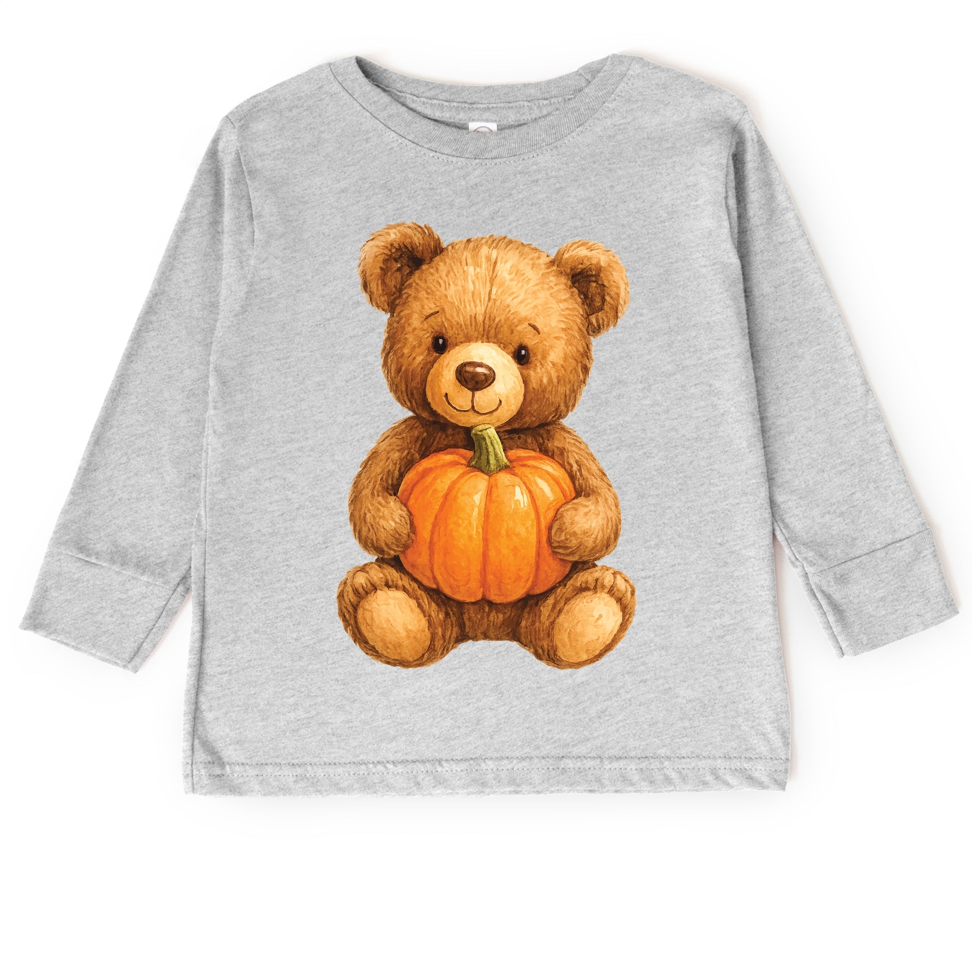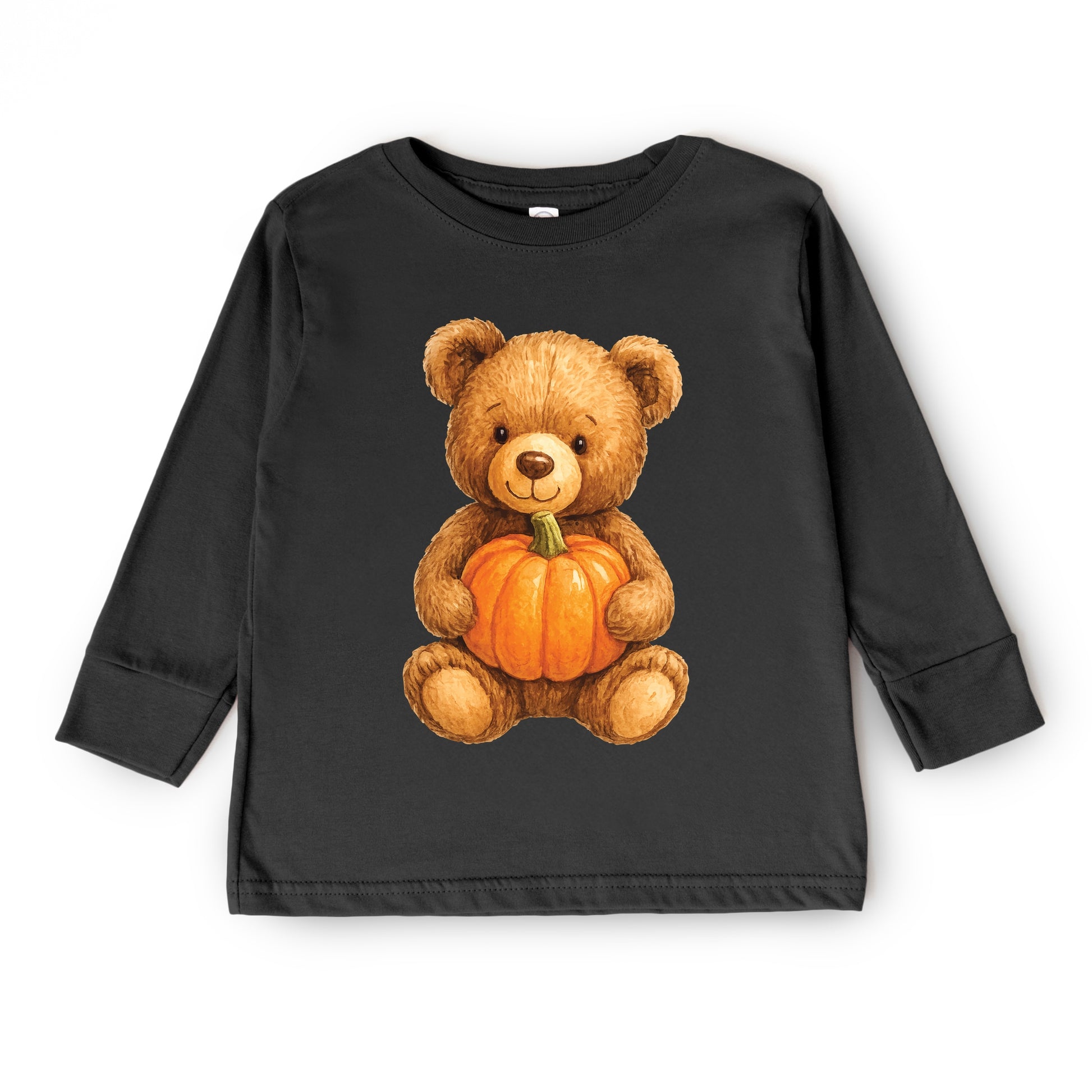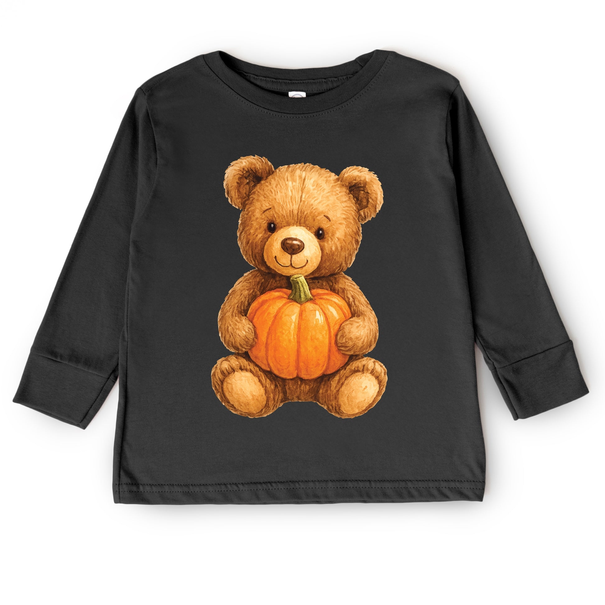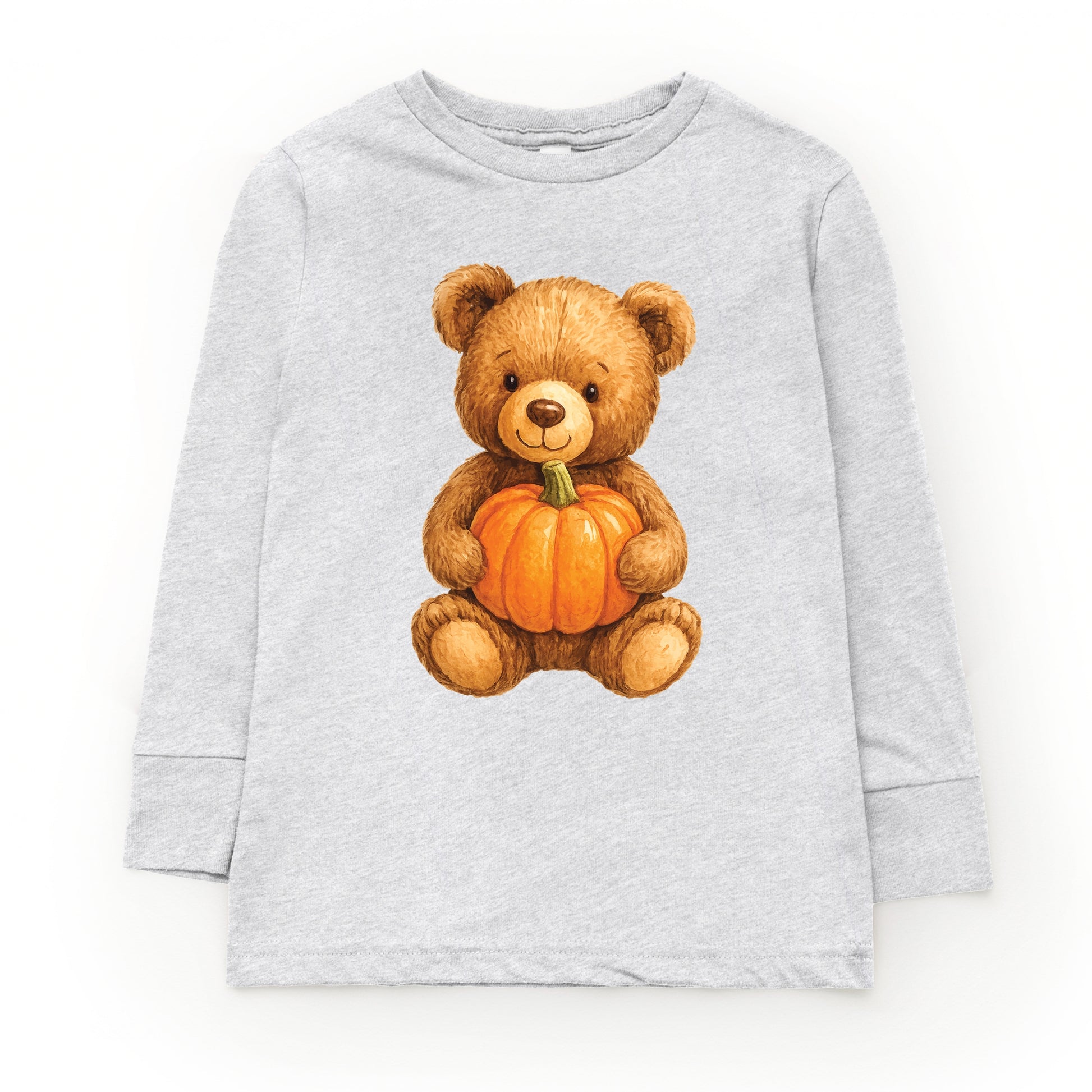 Watercolor Pumpkin Bear - Kids Toddler Long Sleeve Tee and Kids Youth Long Sleeve Tee