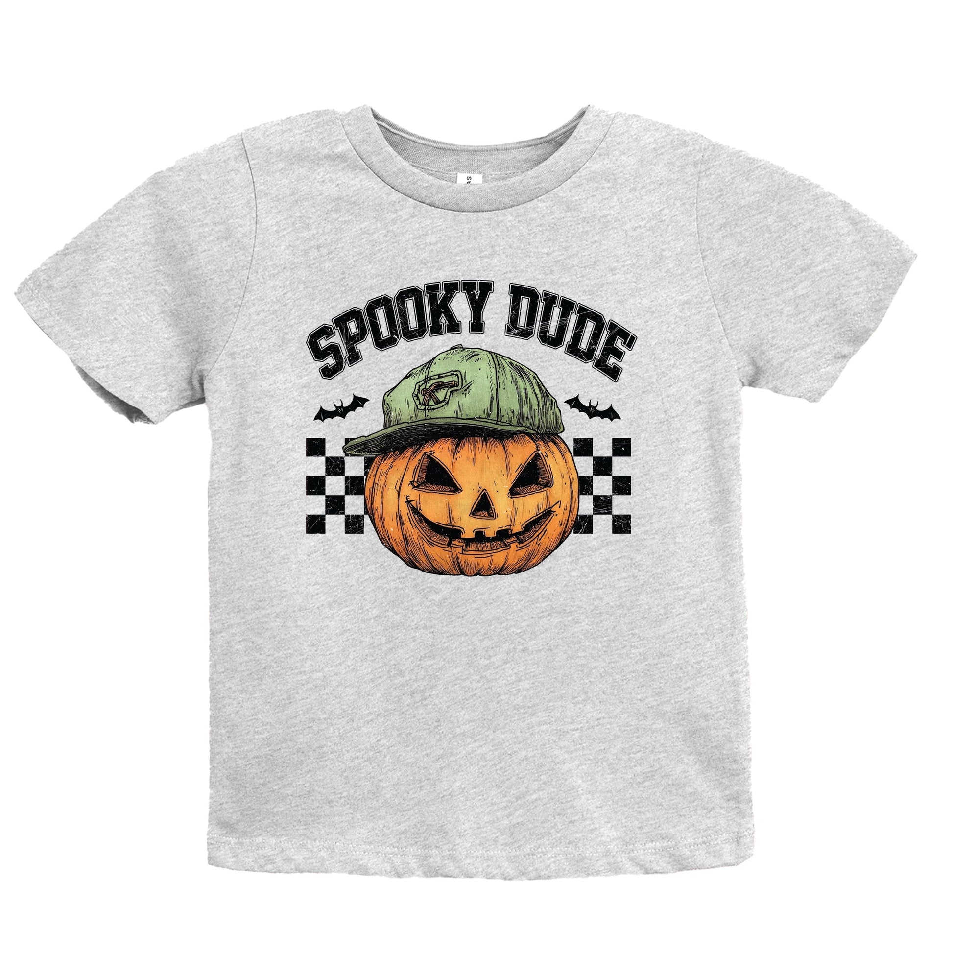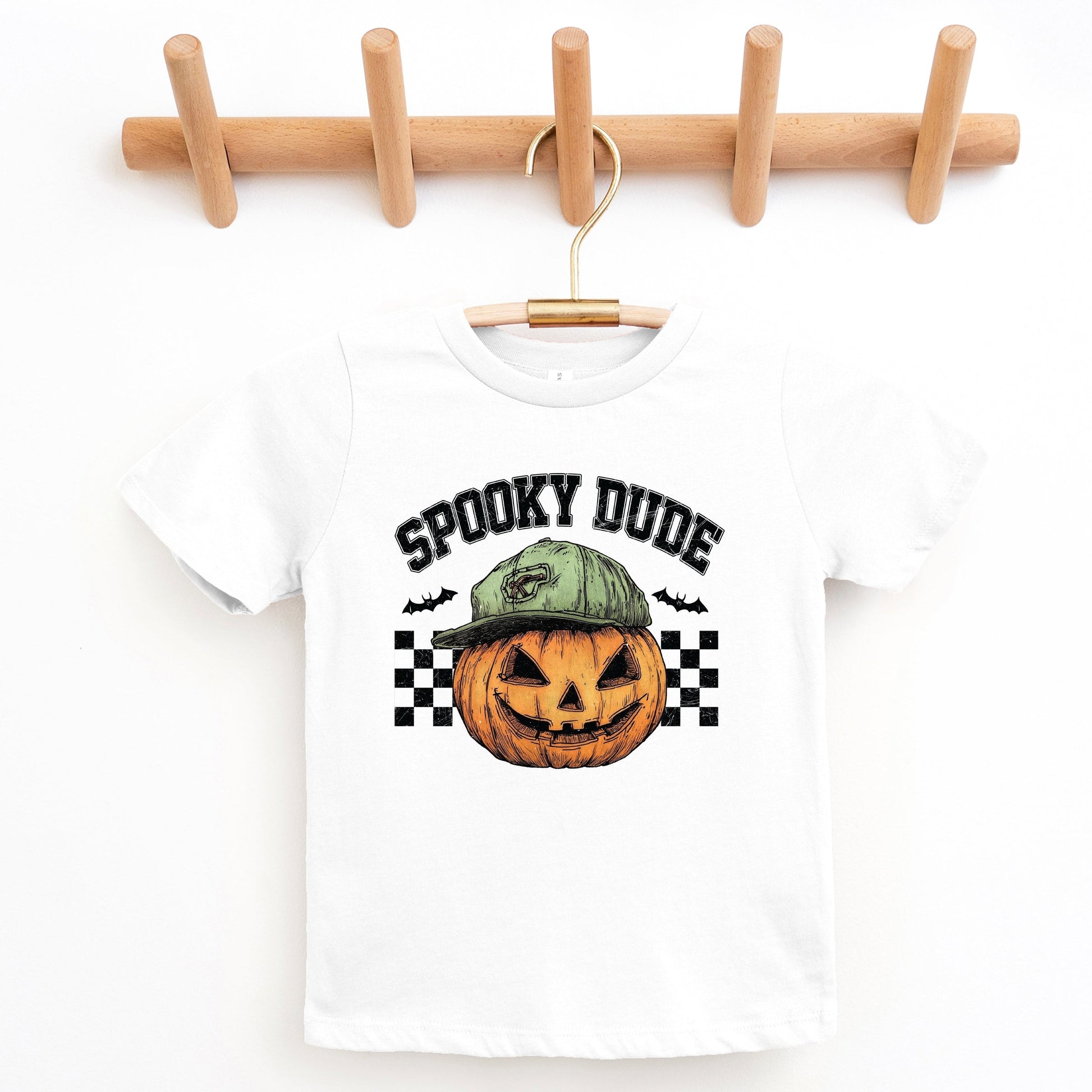 Spooky Dude Checkered Pumpkin - Youth Short Sleeve Graphic T-Shirt and Toddler Short Sleeve Graphic T-Shirt