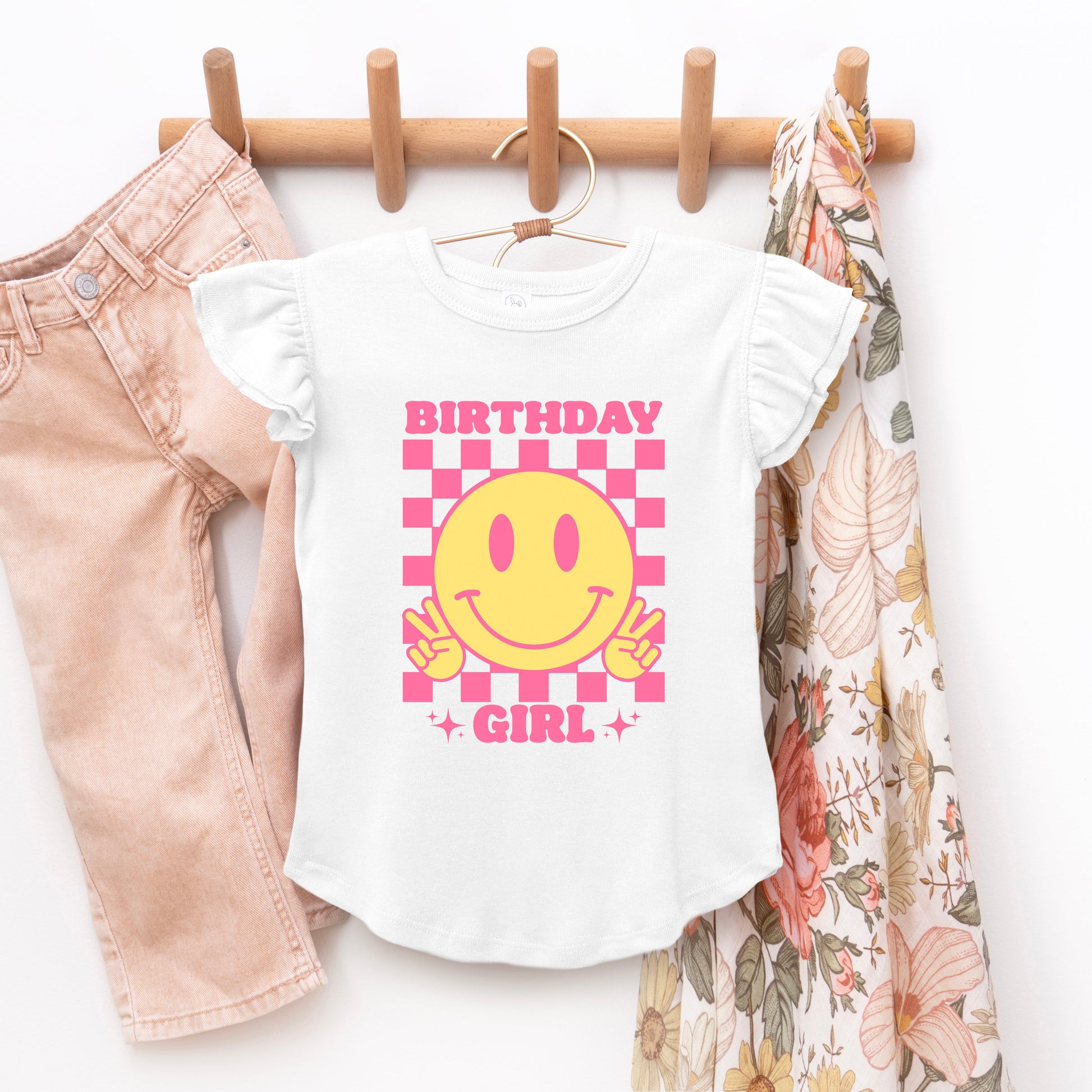 Birthday Girl Checkered | Toddler Graphic Flutter Sleeve Tee