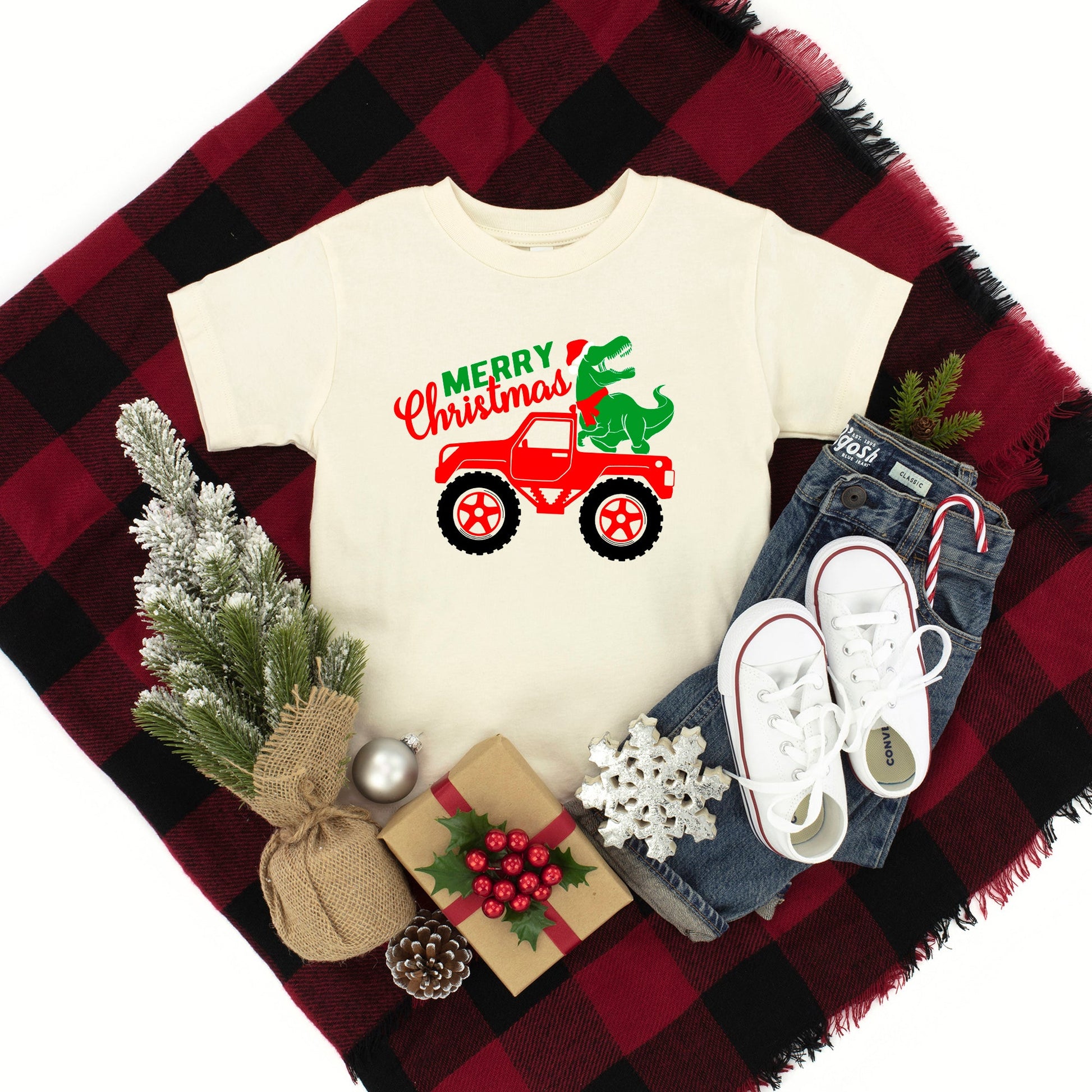 Christmas Dino Truck | Toddler Graphic Short Sleeve Tee
