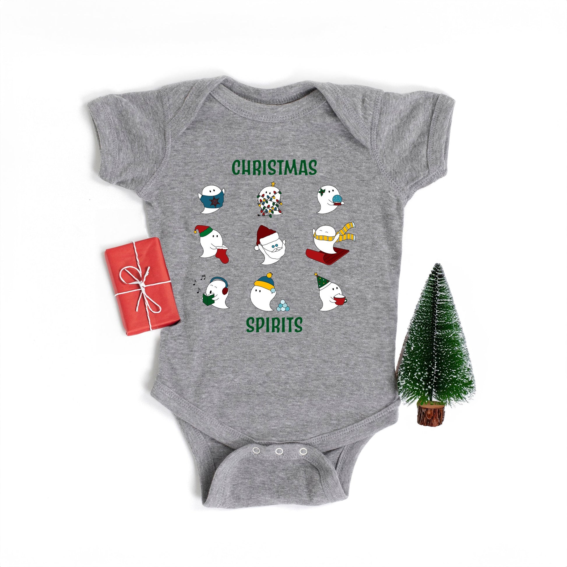 Christmas Spirits Green Words | Baby Graphic Short Sleeve Onesie