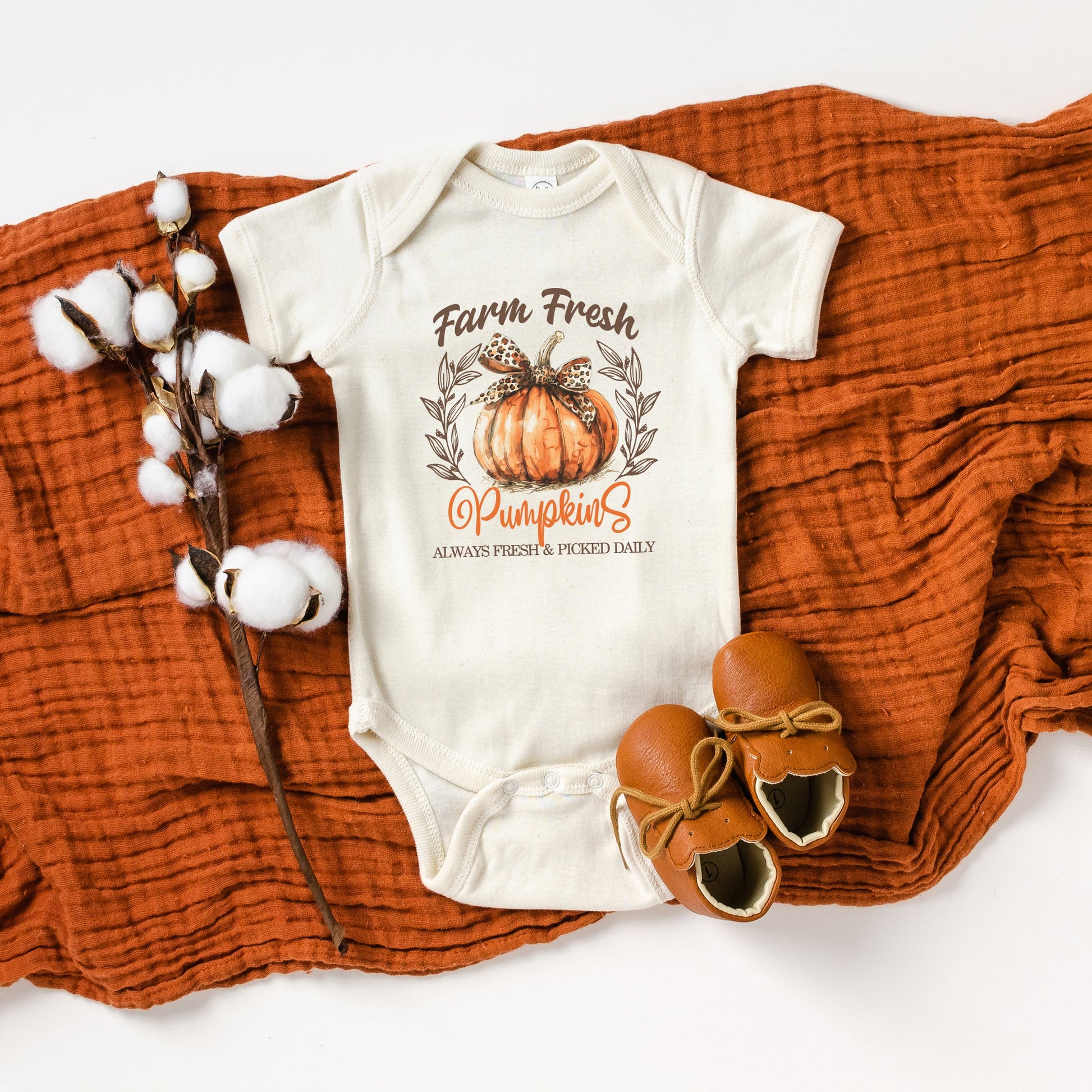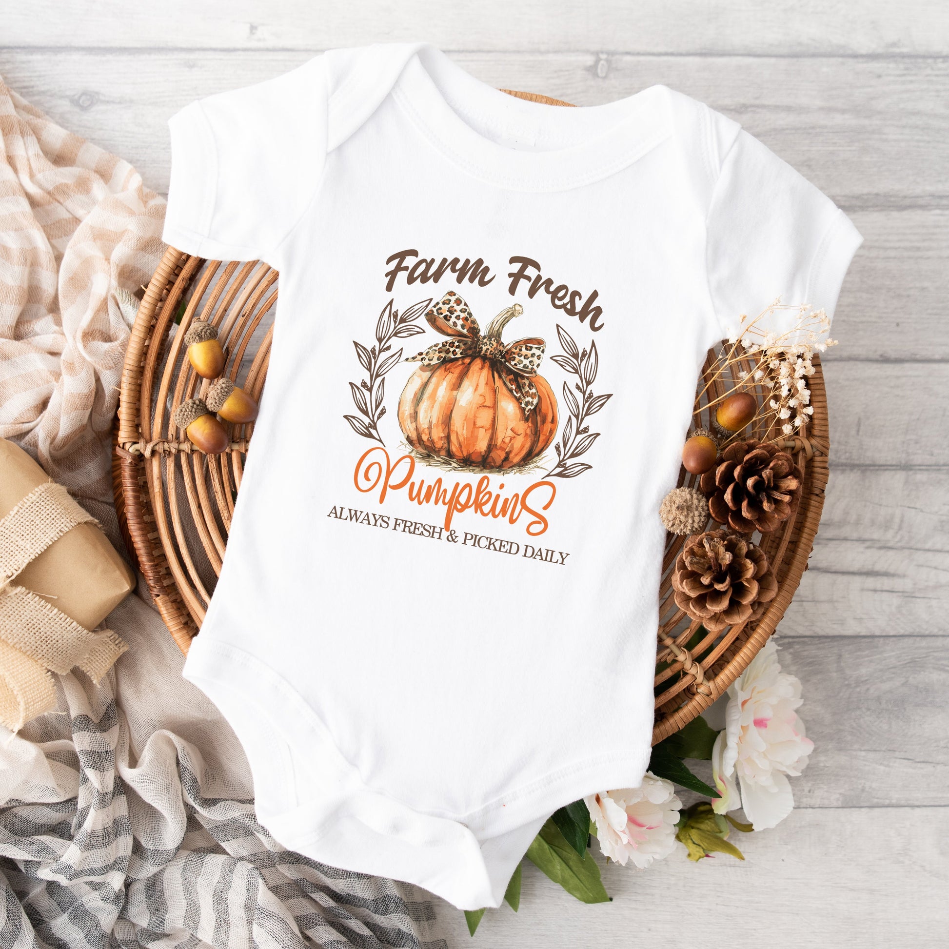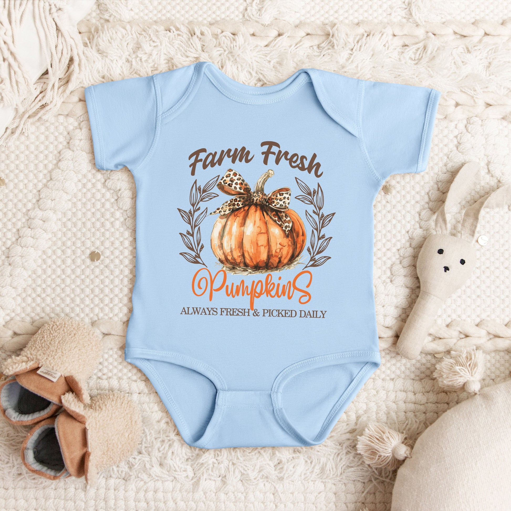 Coquette Farm Fresh Pumpkin | Baby Graphic Short Sleeve Onesie