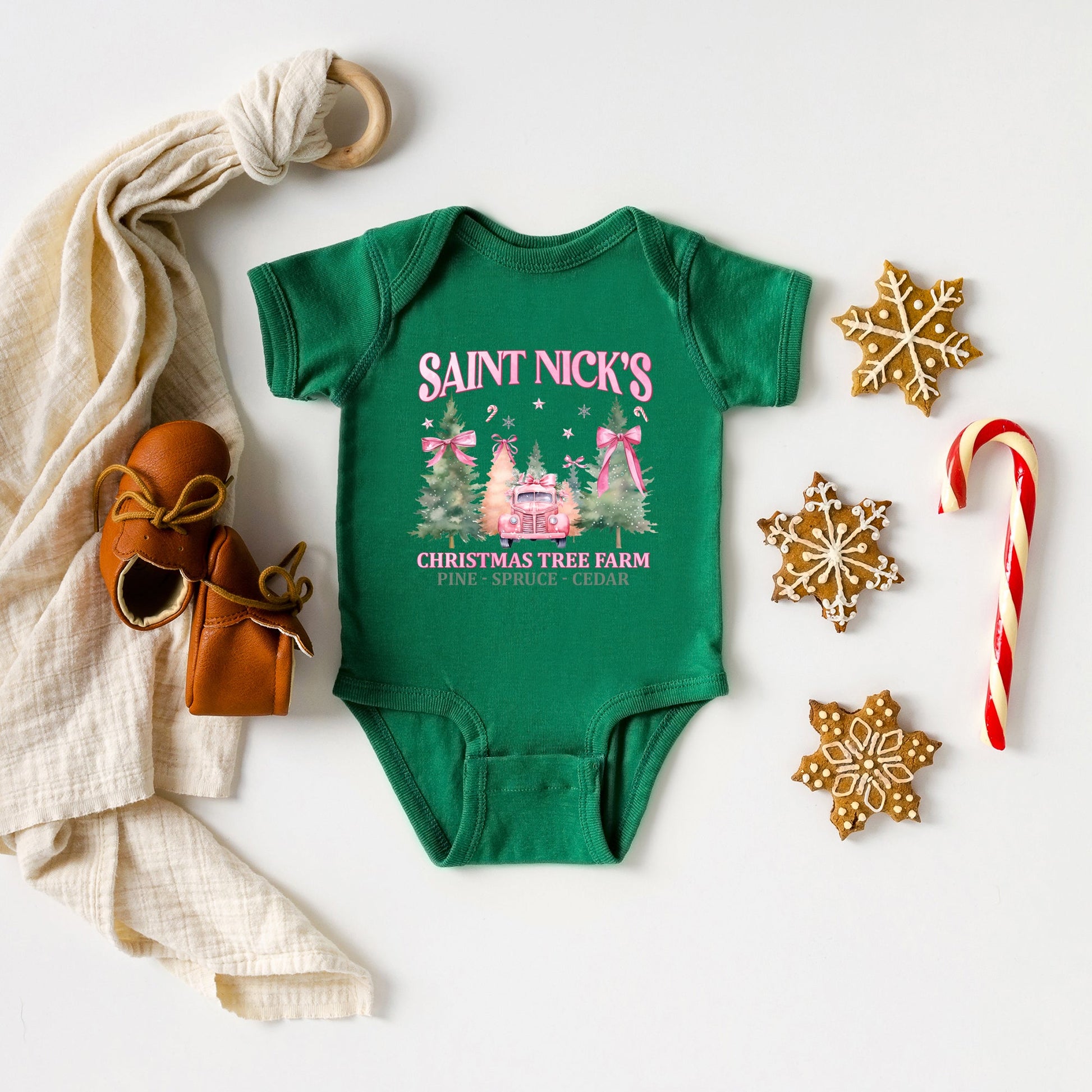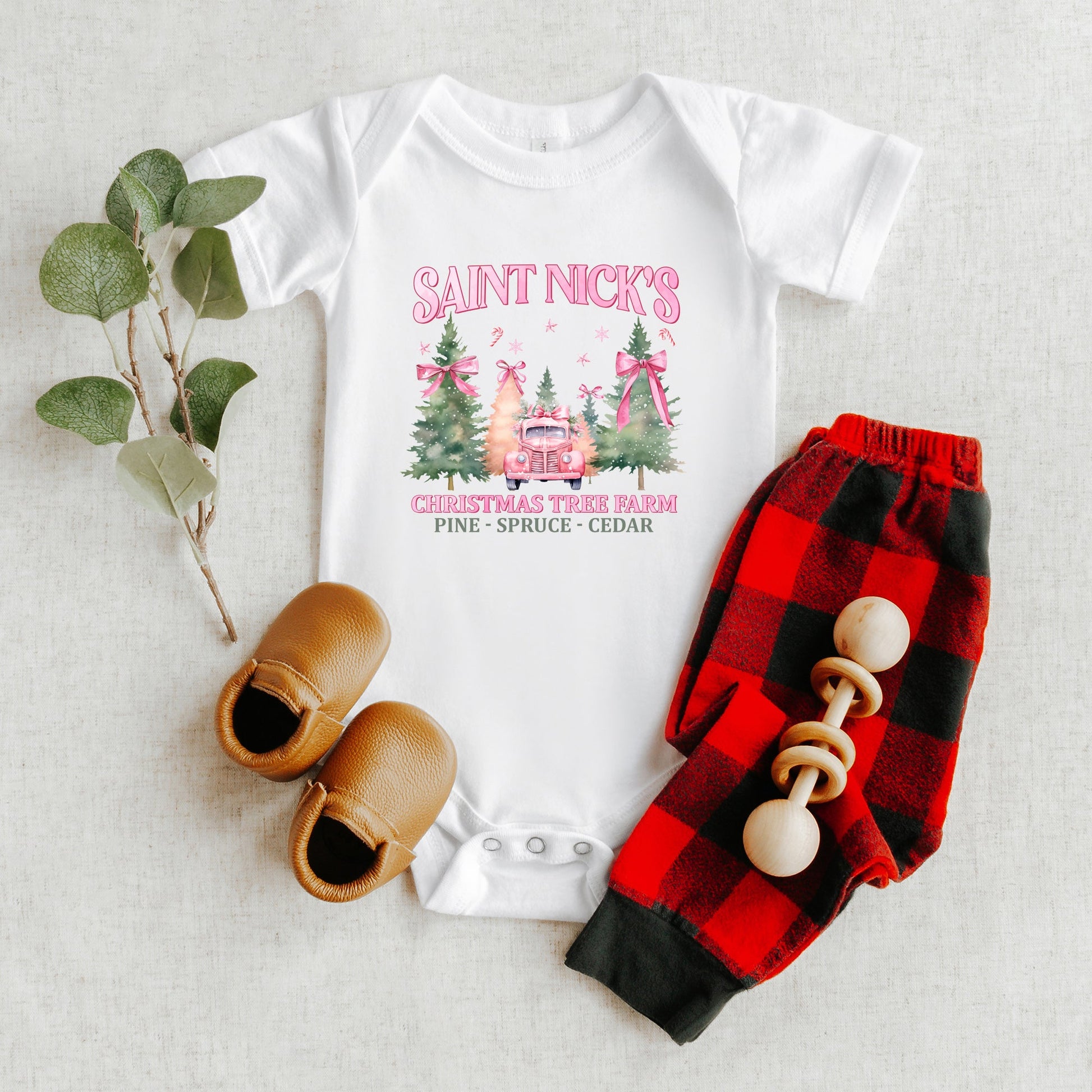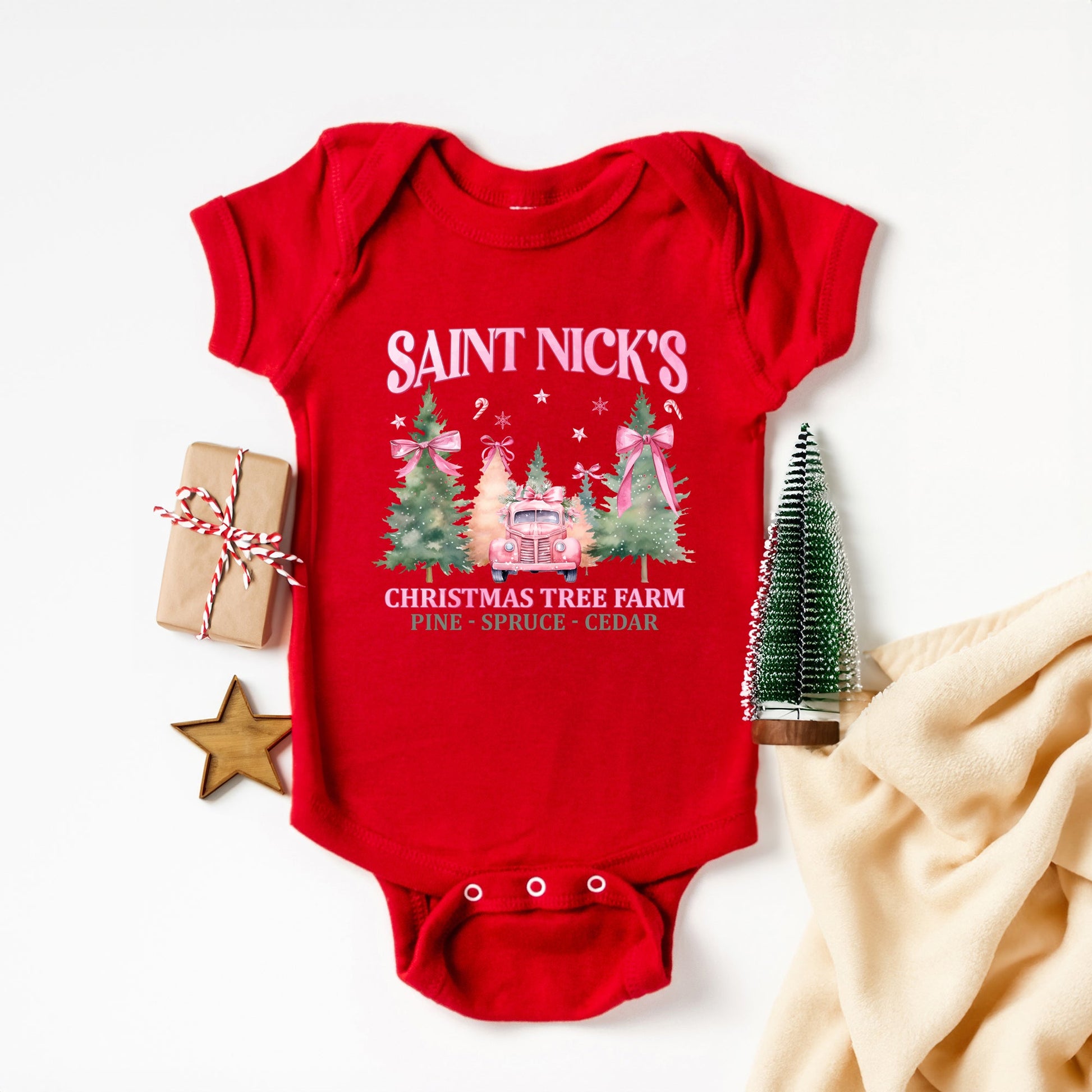 Coquette St. Nick's Tree Farm | Baby Graphic Short Sleeve Onesie