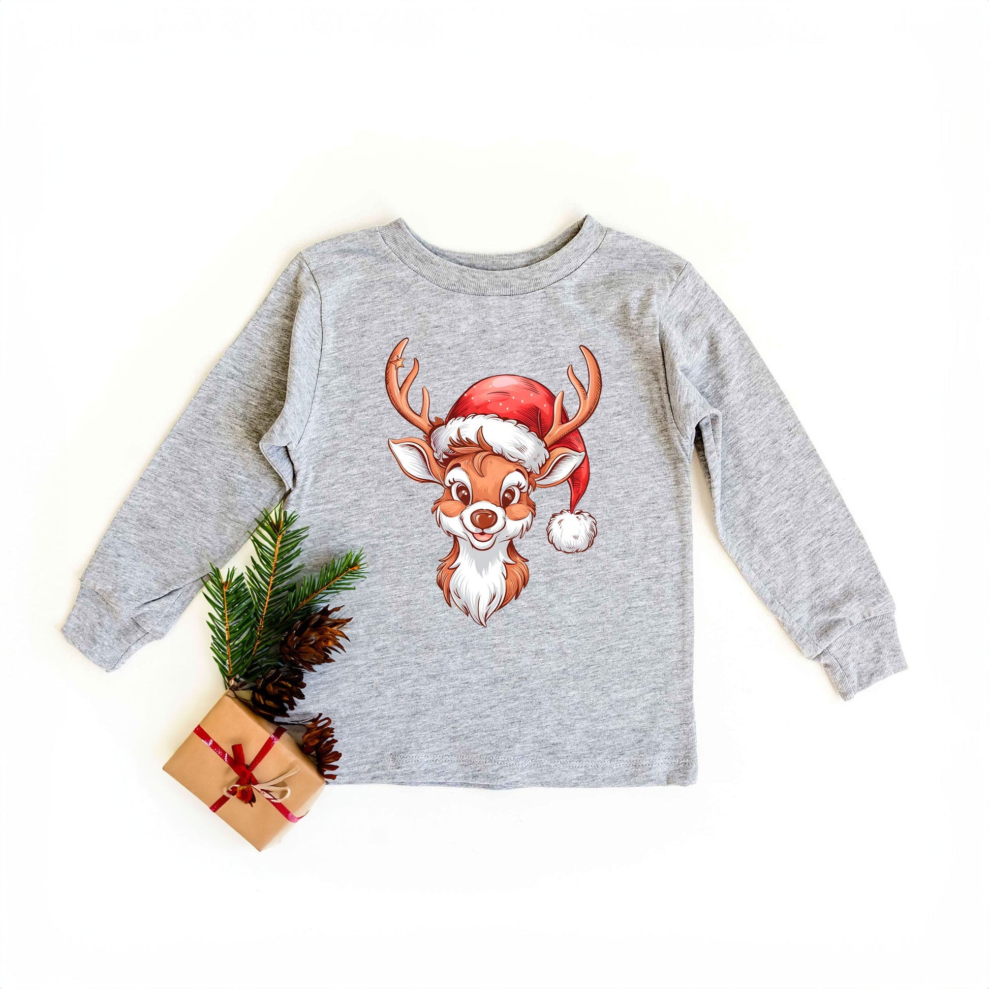 Cute Reindeer Head | Youth Graphic Long Sleeve Tee