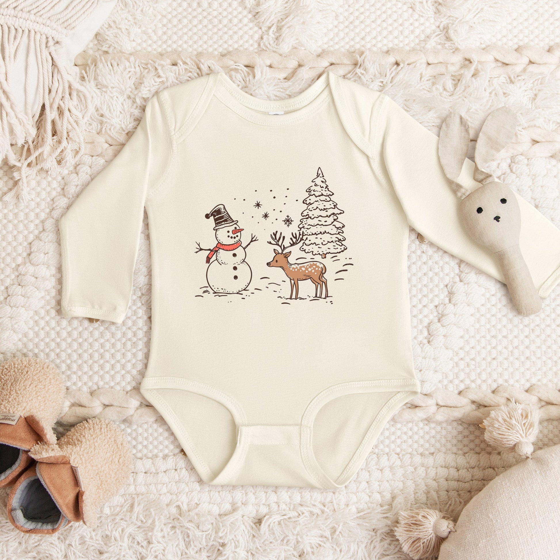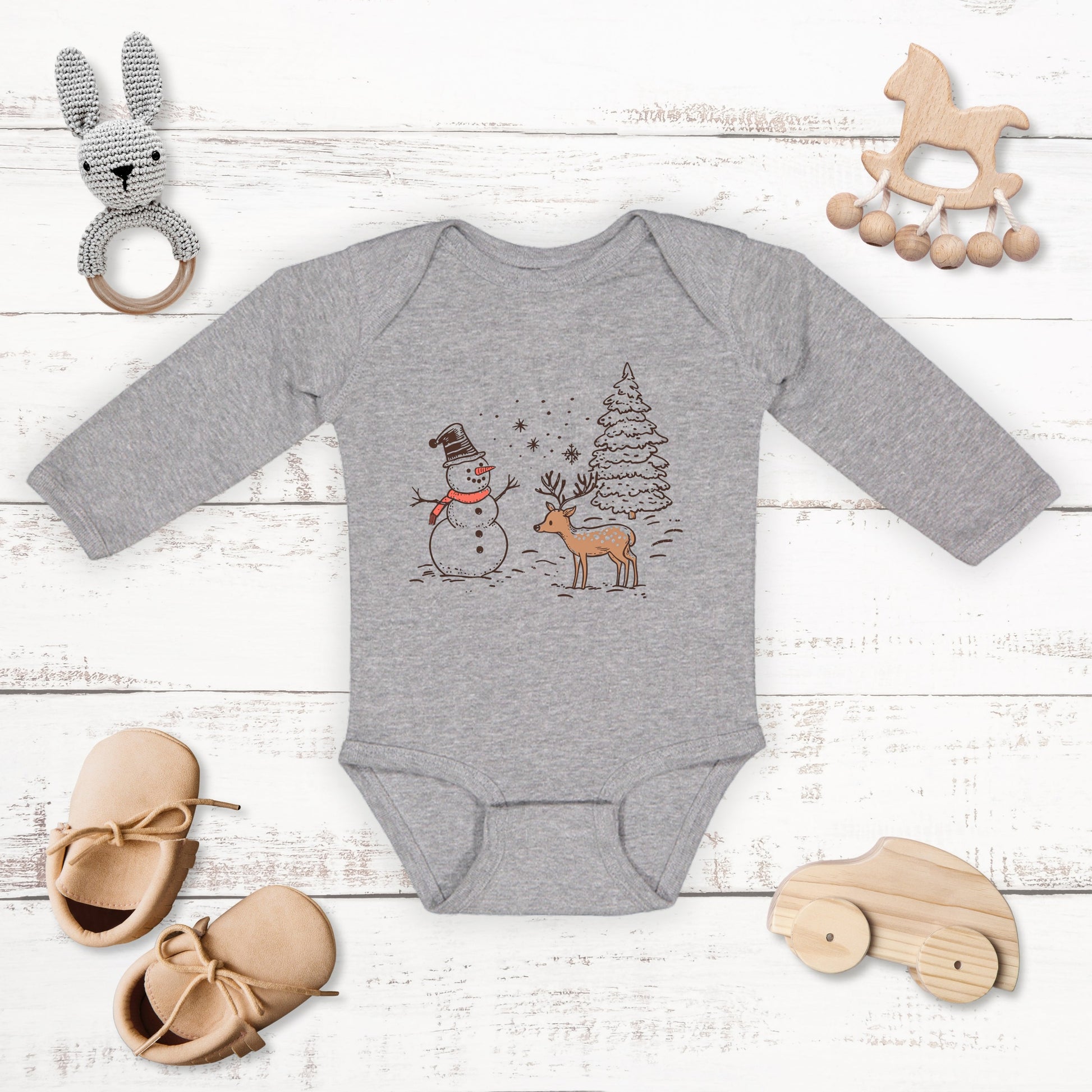 Deer Snowman Scene | Baby Graphic Long Sleeve Onesie