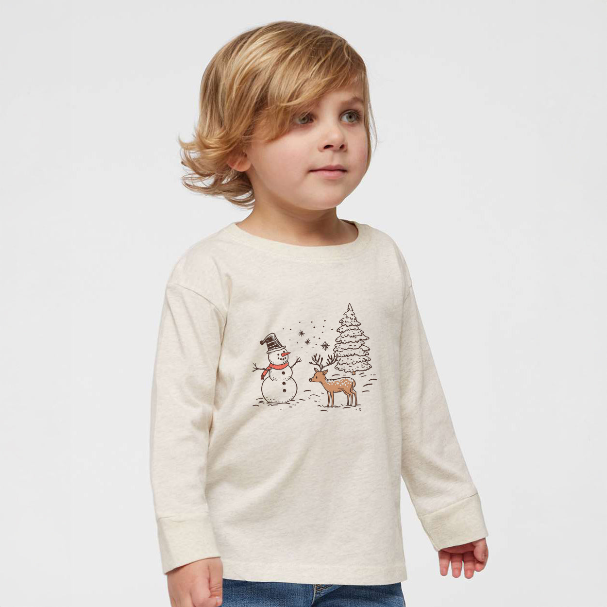 Deer Snowman Scene | Toddler Graphic Long Sleeve Tee