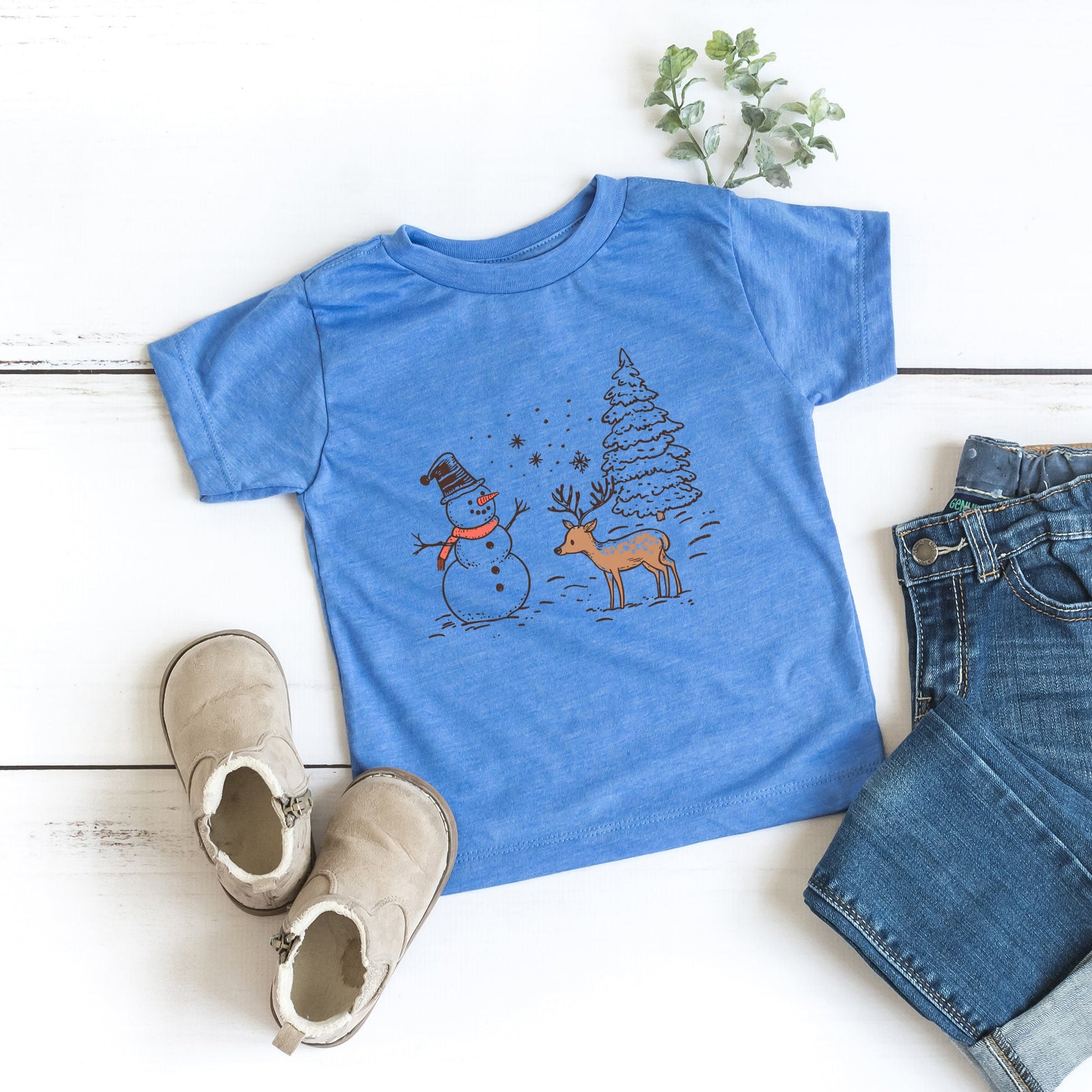 Deer Snowman Scene | Youth Graphic Short Sleeve Tee