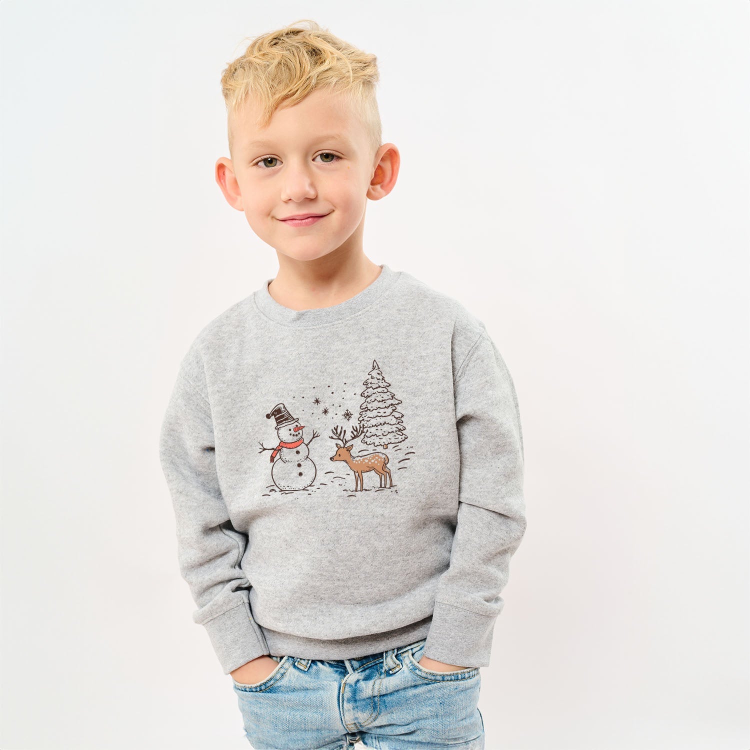 Deer Snowman Scene | Youth Ultra-Soft Graphic Sweatshirt
