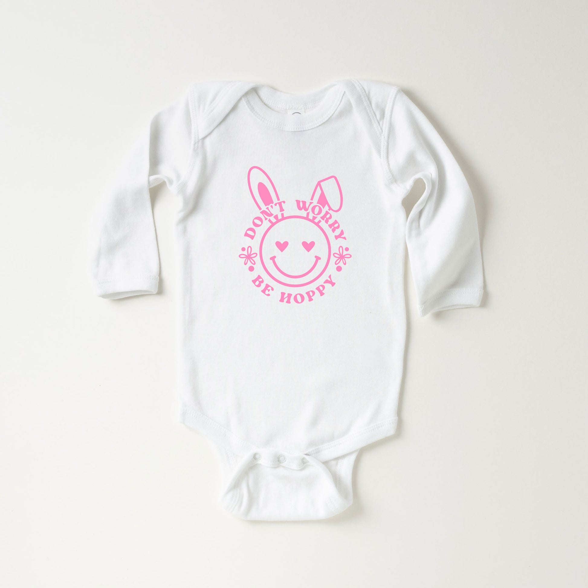 Don't Worry Be Hoppy Smiley Bunny | Baby Long Sleeve Onesie