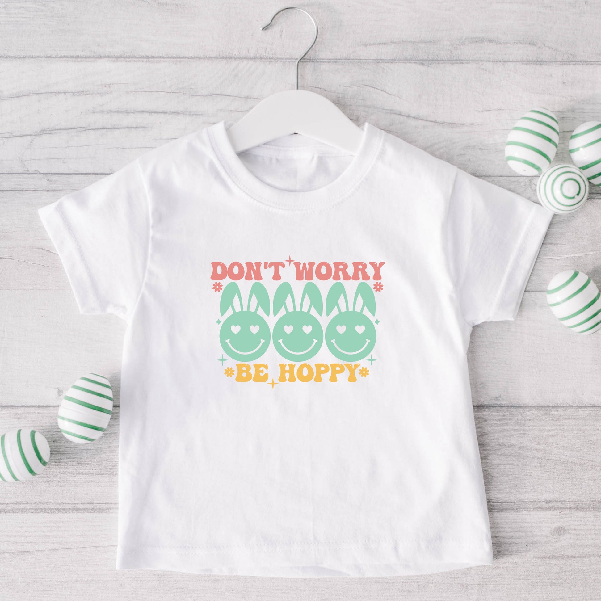 Don't Worry Be Hoppy Smiley Face With Ears | Toddler Short Sleeve Crew Neck