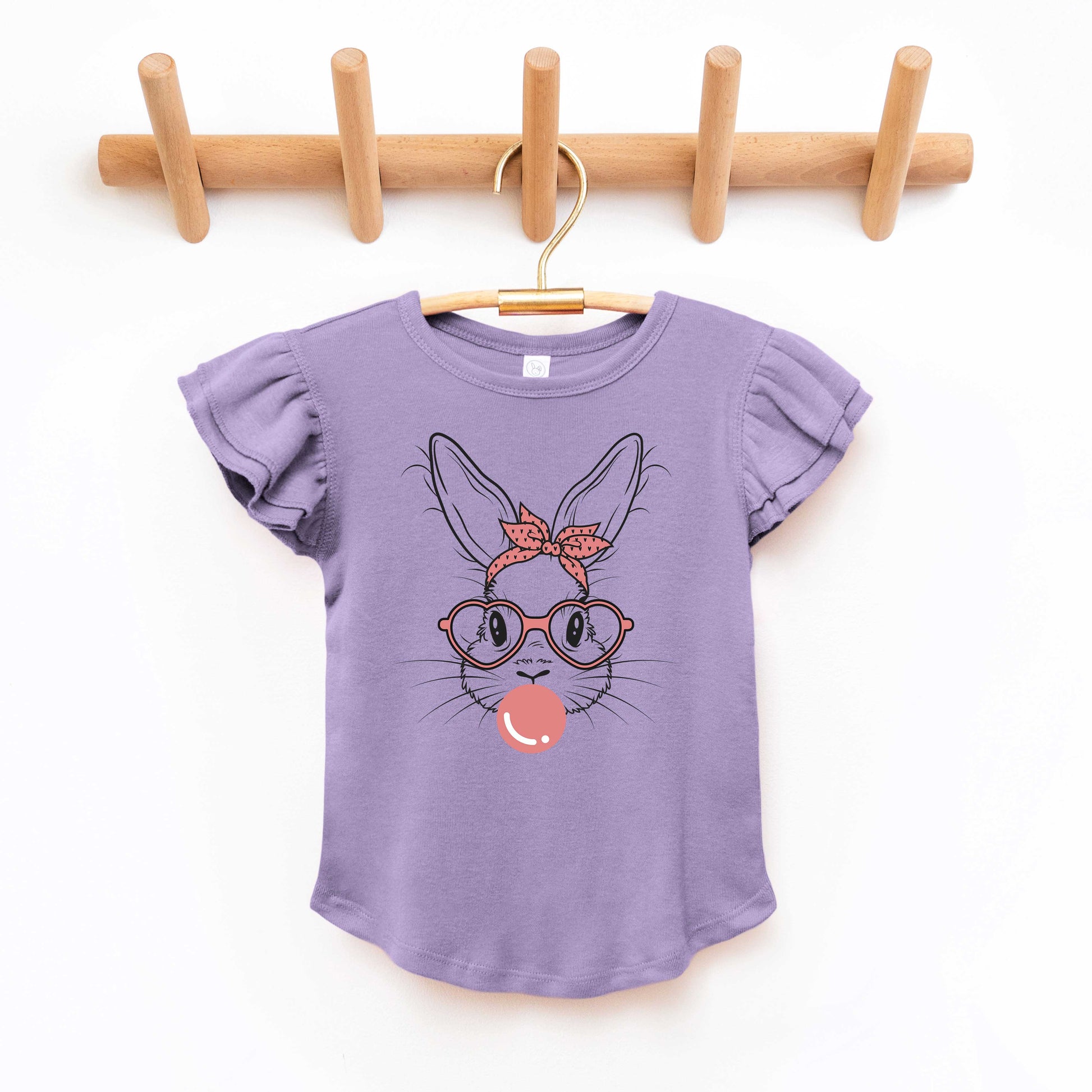Easter Bunny With Bubble Gum | Toddler Flutter Sleeve Crew Neck