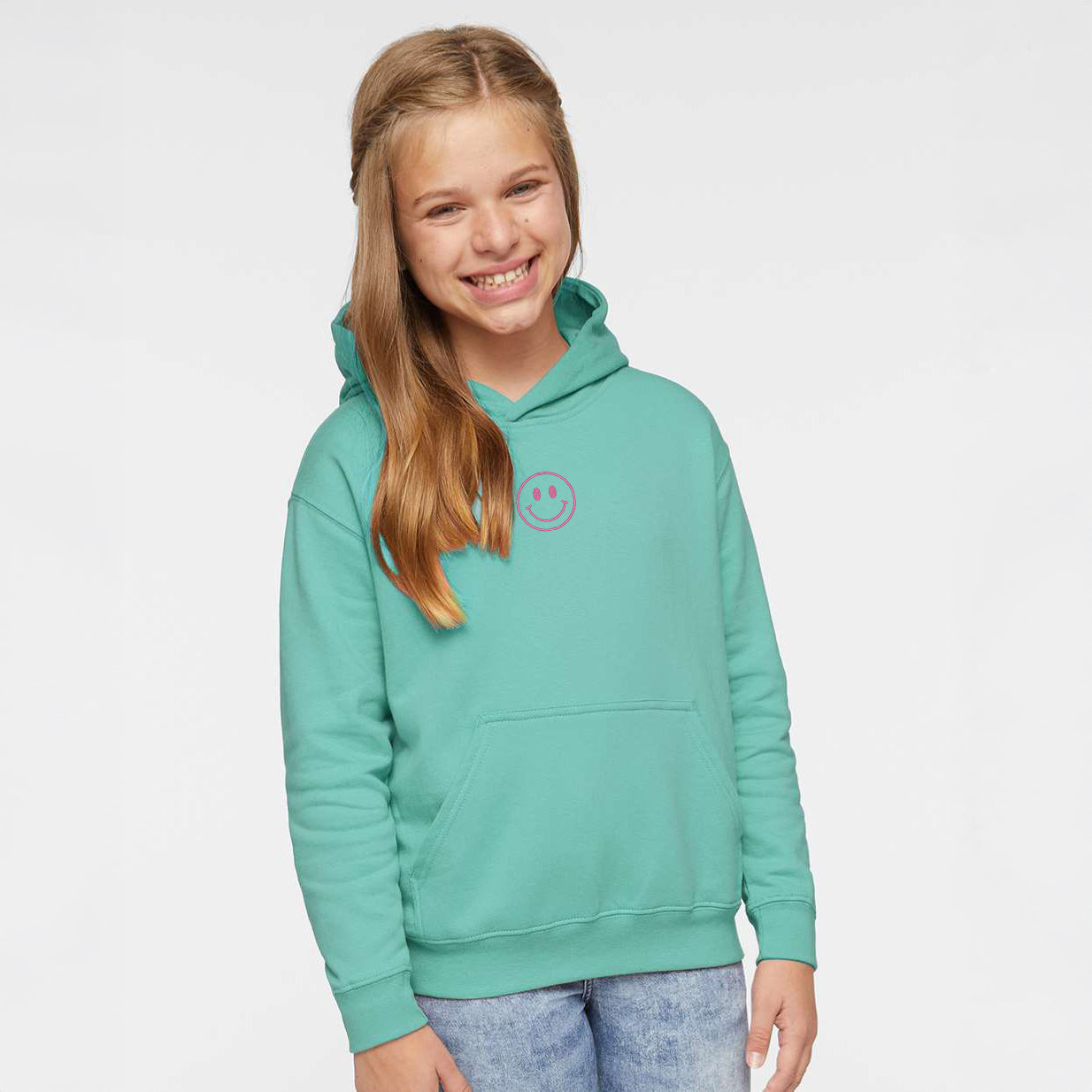 Embroidered Smiley Face Outline | Youth Graphic Hoodie
