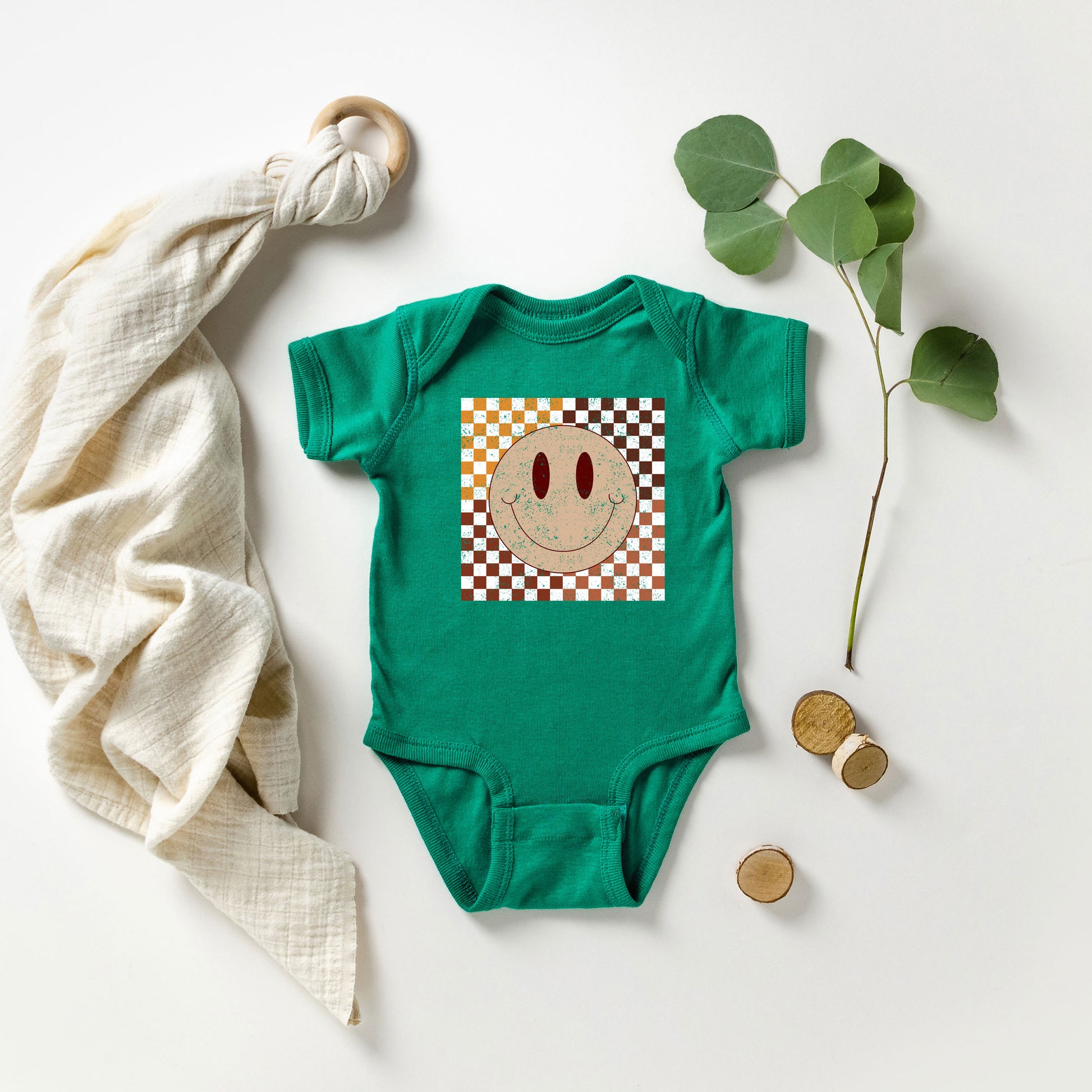 Fall Checkered Smiley | Baby Graphic Short Sleeve Onesie