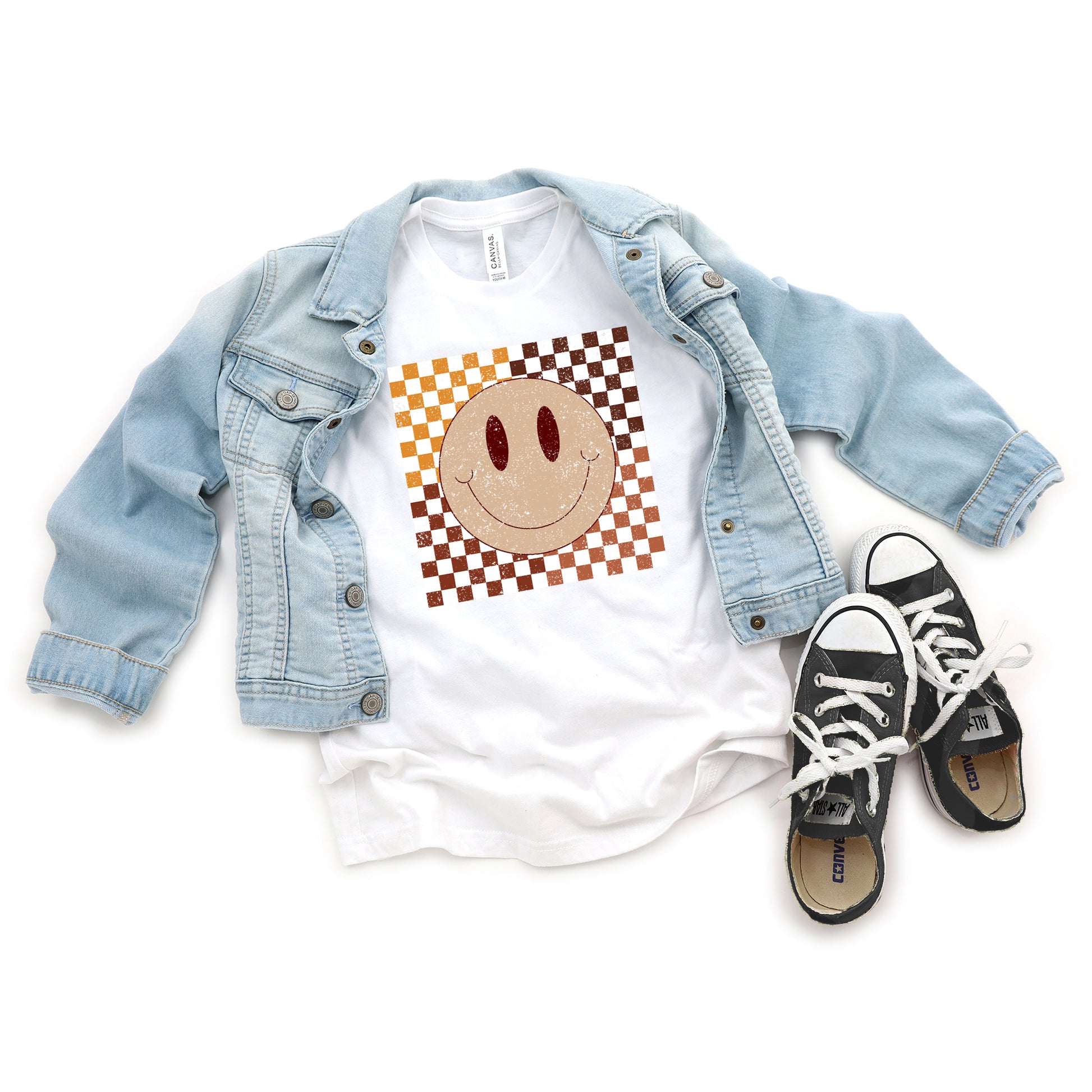 Fall Checkered Smiley | Youth Short Sleeve Crew Neck