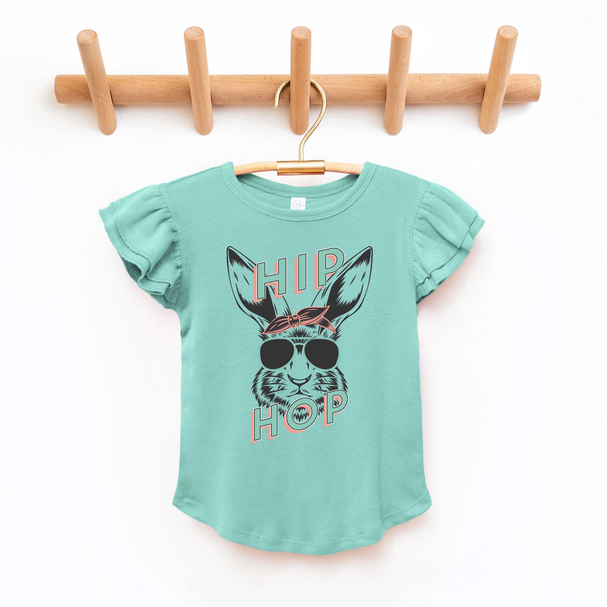Green Hip Hop Bunny | Toddler Flutter Sleeve Crew Neck