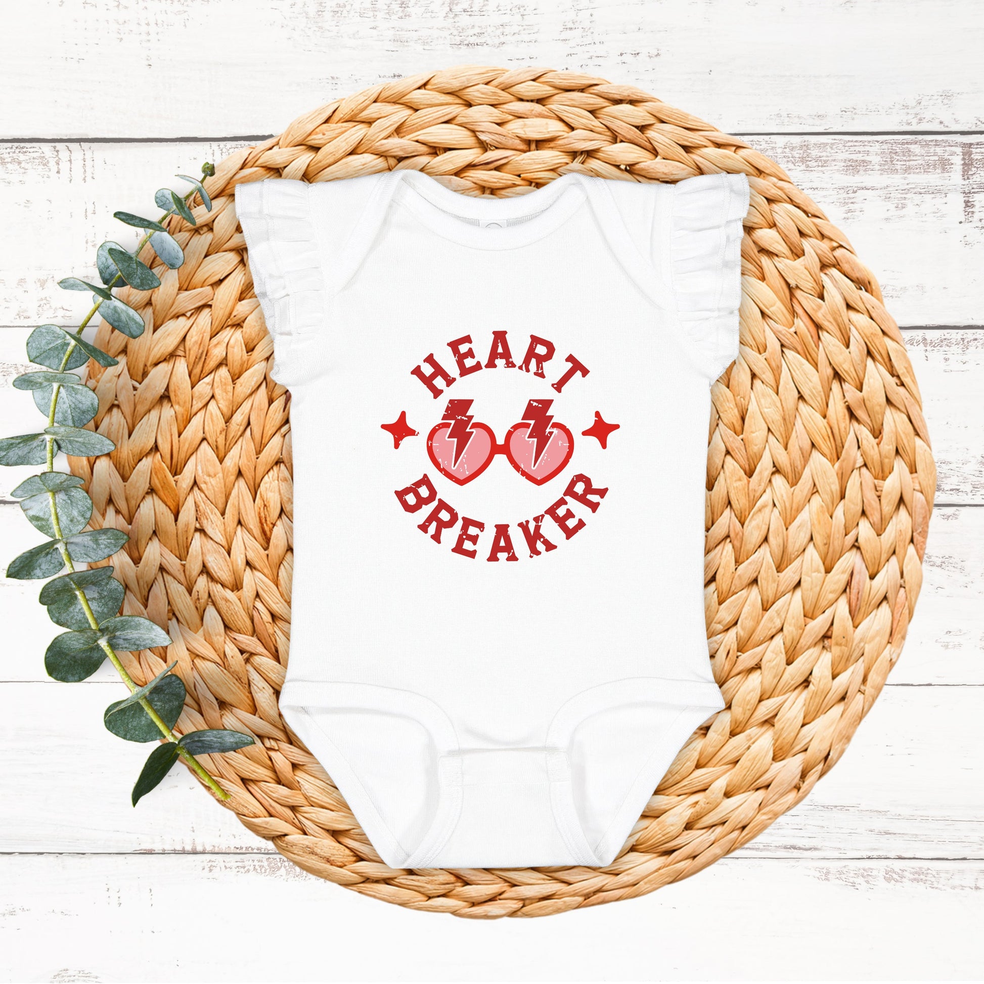 Heart Breaker Sunglasses | Baby Graphic Flutter Sleeve Onesie