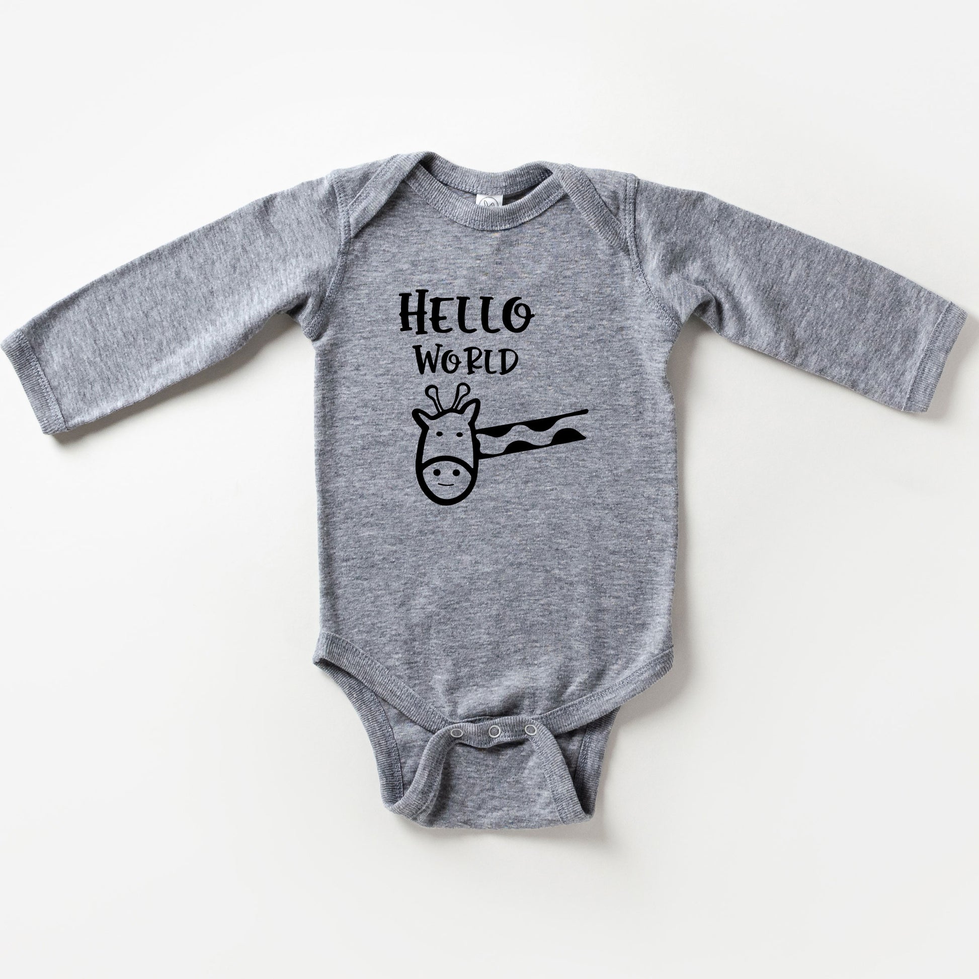 Hello World Giraffe | Baby Long Sleeve Onesie