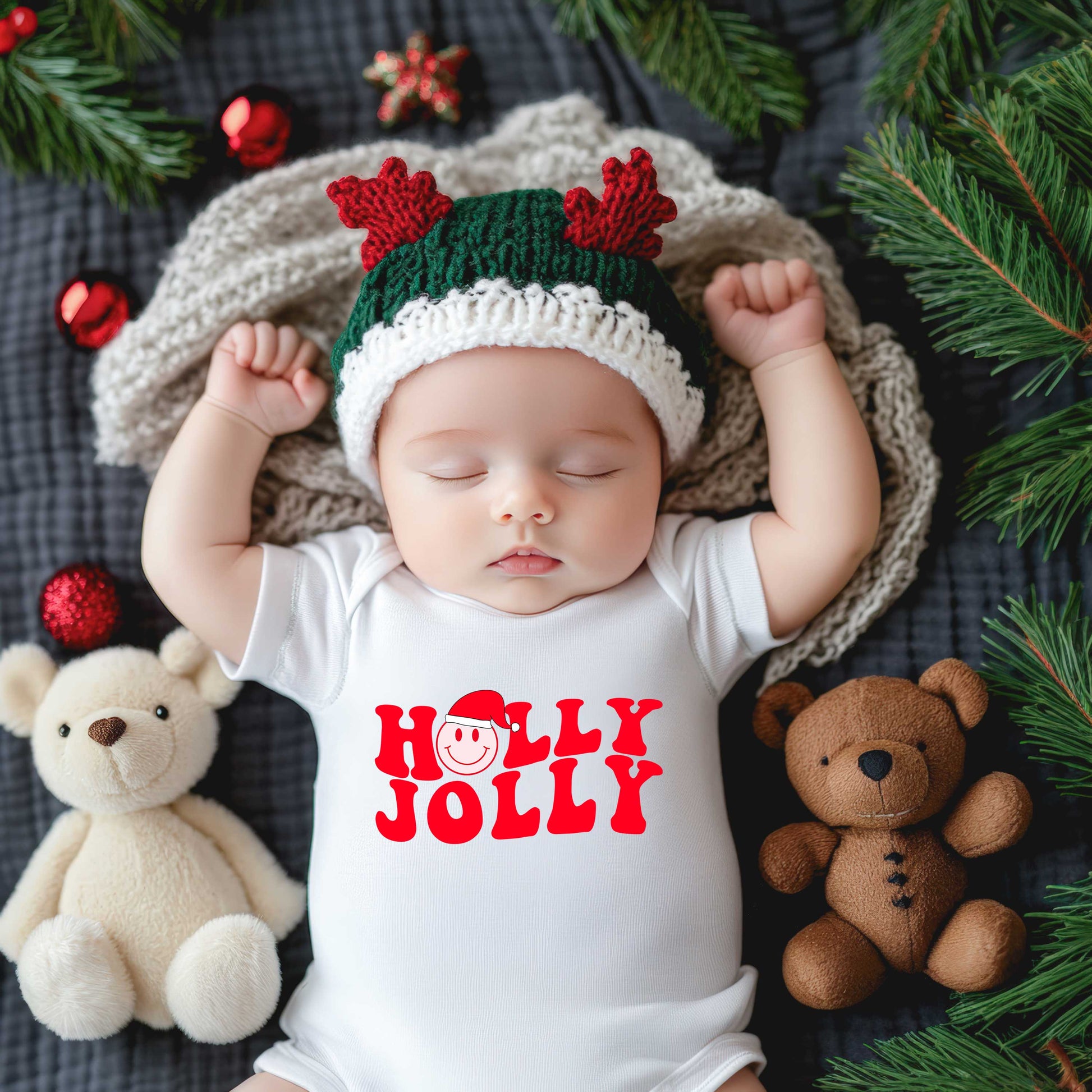 Holly Jolly Smiley Face | Baby Graphic Short Sleeve Onesie