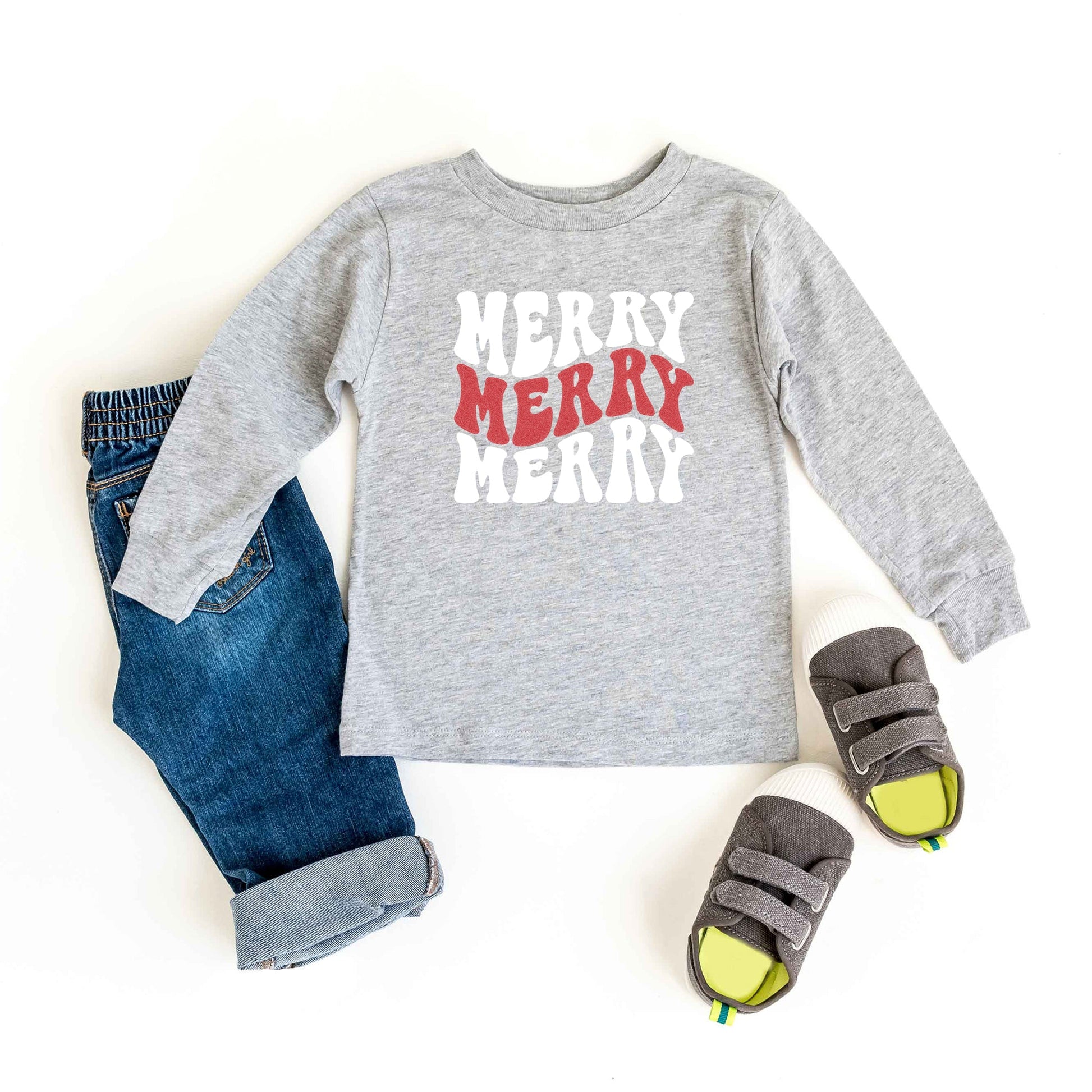Merry Stacked Wavy Glitter | Youth Graphic Long Sleeve Tee