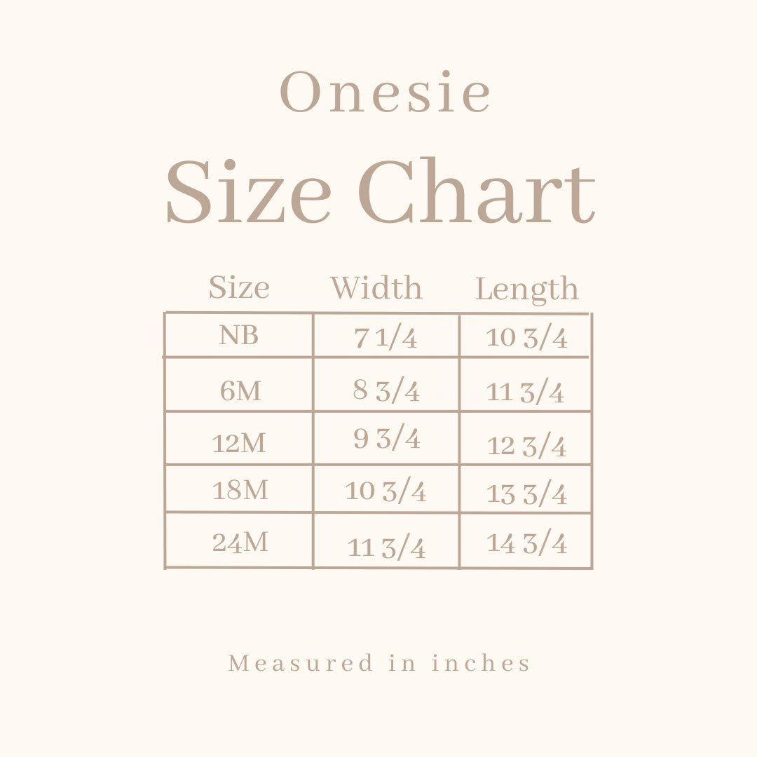 *If you would like the design printed on a different color Onesie, we have many more options to choose from (see color chart). Send us a message and we’ll be happy to make any changes for you. When selecting your onesie and ink color, keep in mind that some combinations may look better than others. For example, black ink is less visible on a dark-colored tee. Enjoy your freedom to select whatever you'd like, but please think about colors and contrast. Happy shopping!