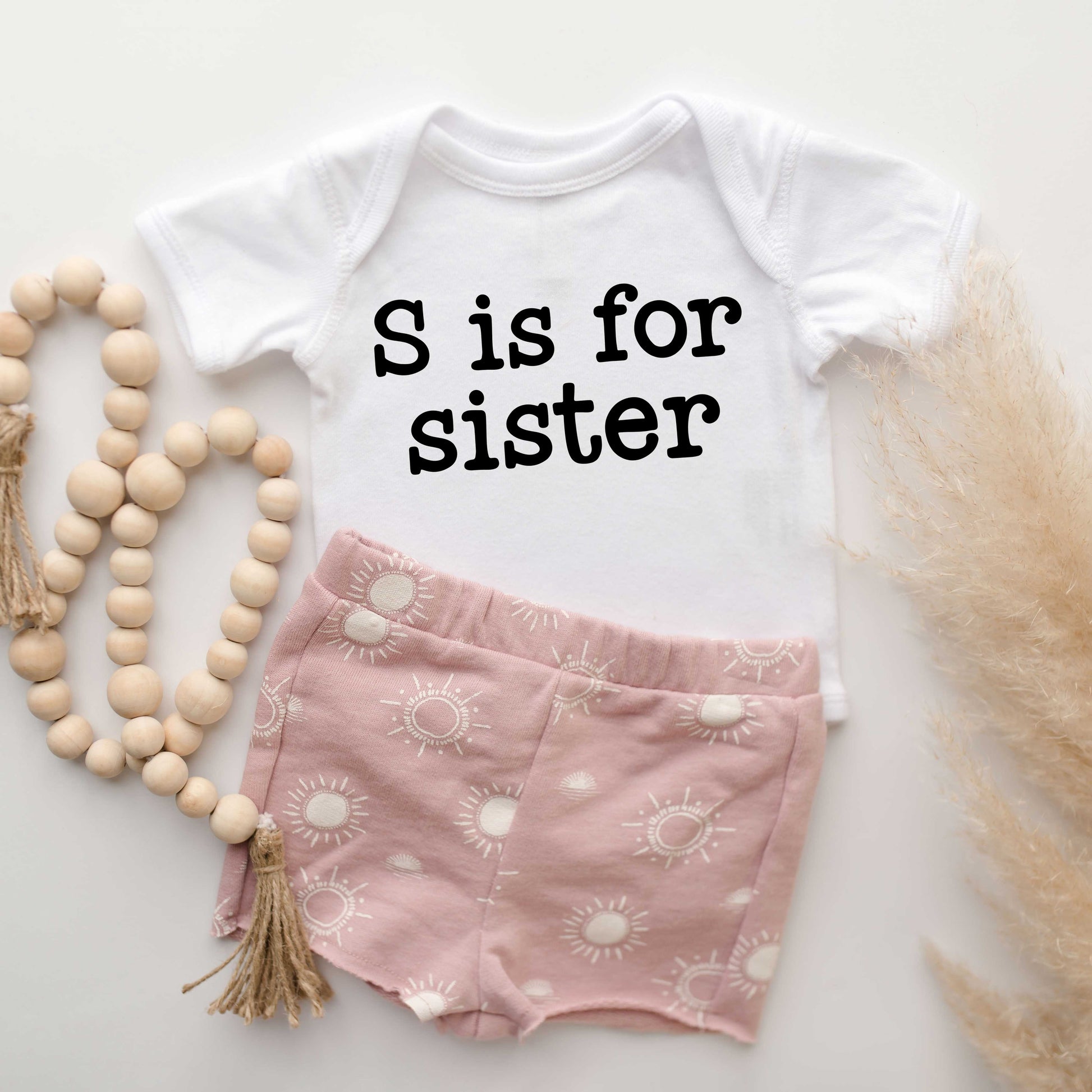 S Is For Sister | Baby Graphic Short Sleeve Onesie