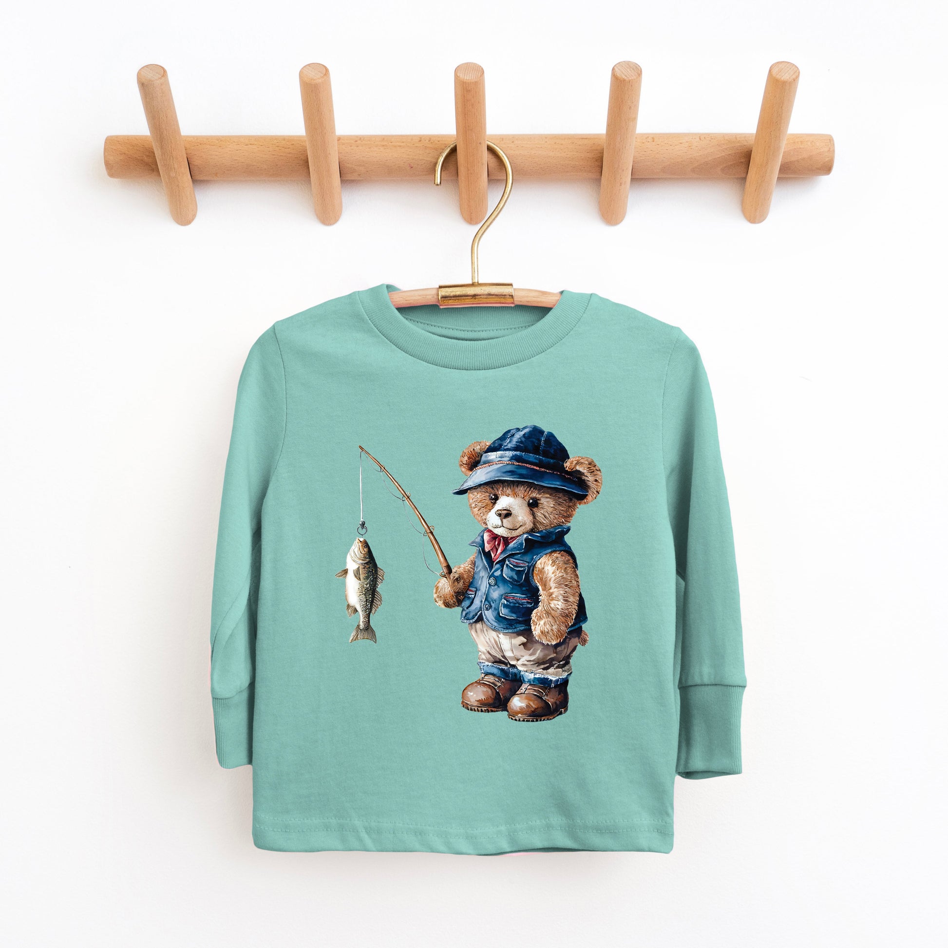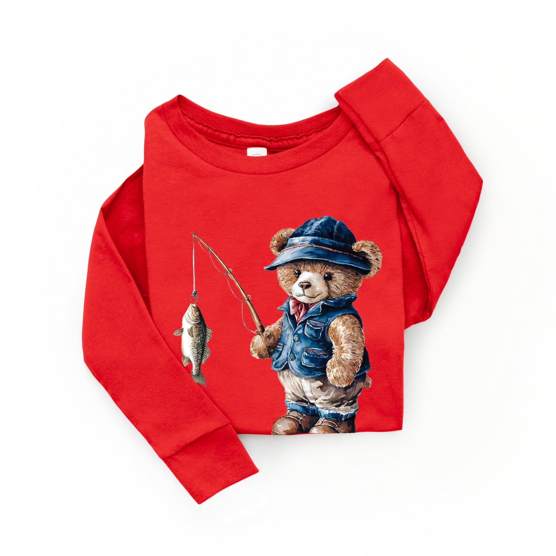 Teddy Bear Fisherman | Youth Graphic Long Sleeve Tee